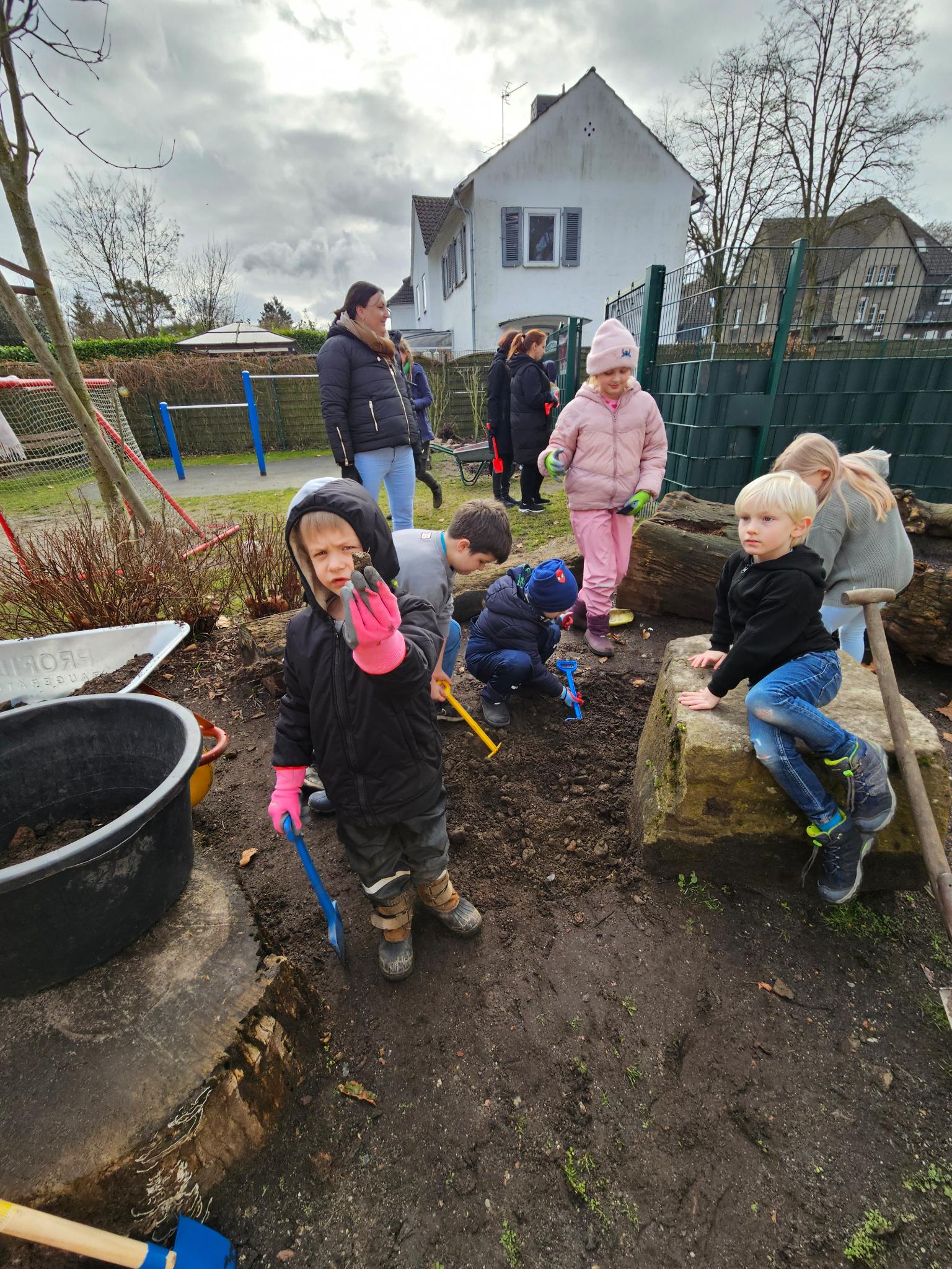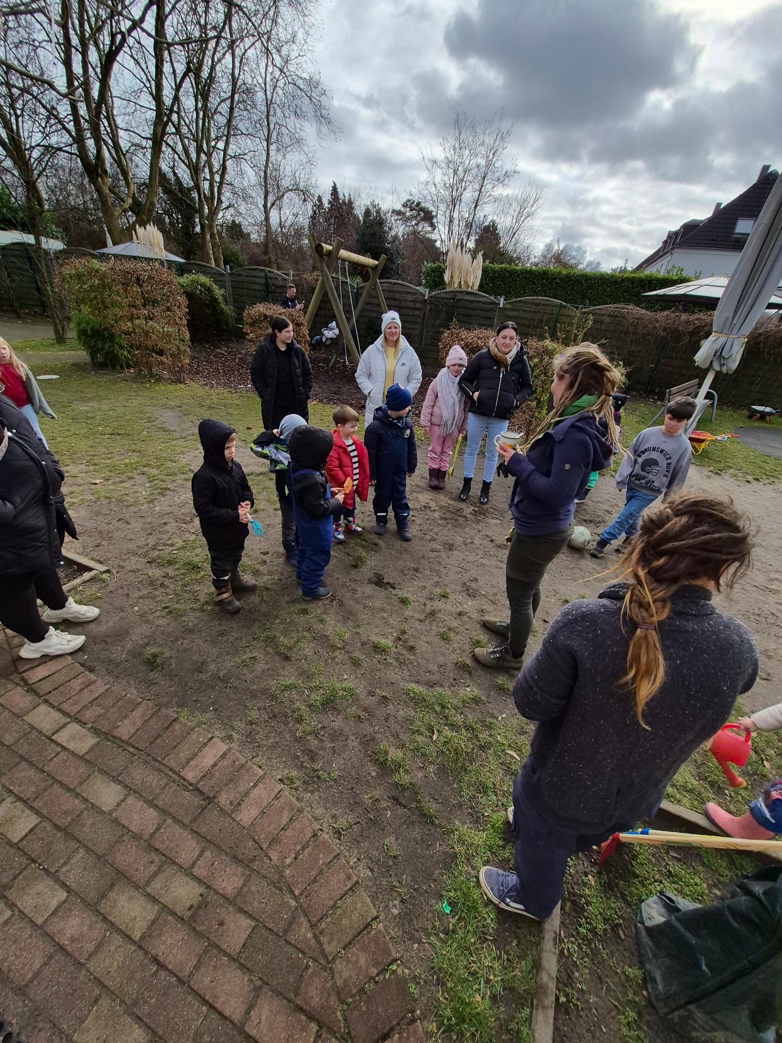 Neben dem Bau von zwei Sandarien* wurden die Beete vor der Rappelkiste umgestaltet. Durxch die fleißige Mithilfe von ca. 20 Kinder und Eltern aus der Rappelkiste und demn Inklusionsfachkräften der Rappelkiste wurden etwa 250 einheimische Wildstauden gepflanzt: